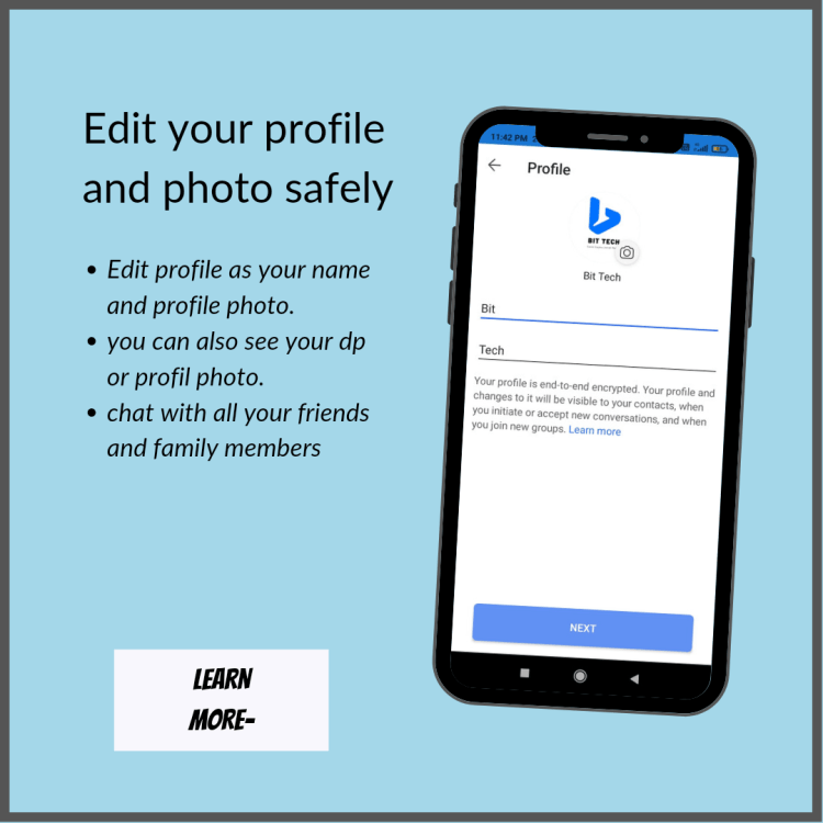 - Edit profile photo and name easy or successfully.
